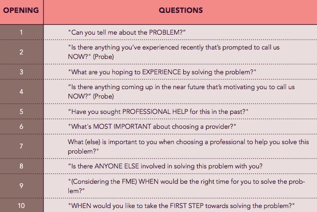 The top 10 sales questions that I suggest you ask in every phone call/consultation are: